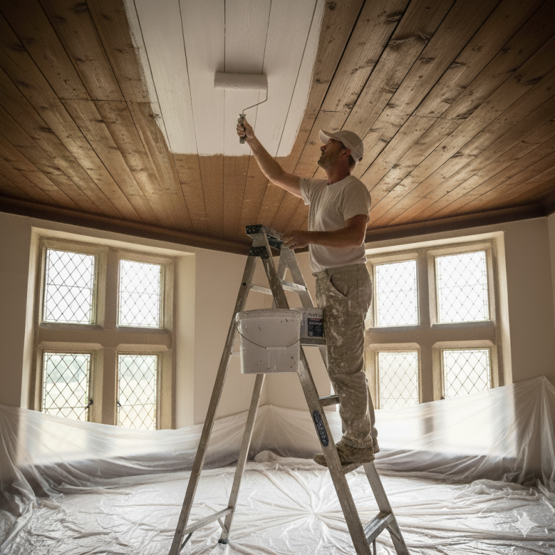 SÜDWEST Katiotech Decken-Lack je matná, vodou riediteľná jednozložková farba na nátery drevených stropov, panelov a ostatných drevených častí v interiéri. Výrobok je založený na báze kationového spojiva, izoluje zložky obsiahnuté v dreve a priľne k mnohým podkladom bez dodatočného základného náteru.